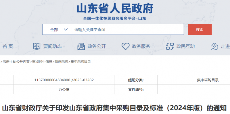 23年11月,山东省发布了《山东省政府集中采购目录及标准(2024年版)》,已于2024年1月1日正式施行。