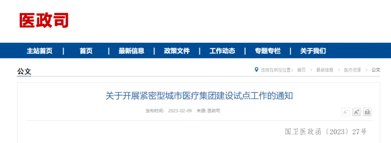 2023年12月30日,国家卫生健康委等10部门联合印发了《关于全面推进紧密型县域医疗卫生共同体建设的指导意见》。