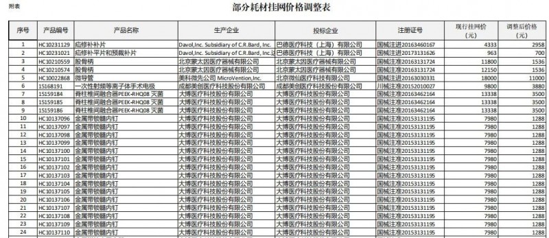 2月19日,浙江省药械采购中心发布《关于调整部分医用耗材价格等信息的通知》,自2024年2月20日起执行此次价格调整结果。