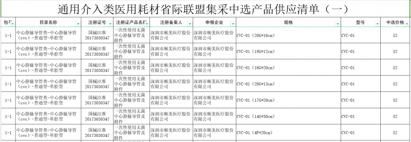 通用介入和神经外科类医用耗材省际联盟:中心静脉导管类、输液港、非侵入式血管止血装置、三联三通、环形注射器和Y接头,造影导管、造影导丝、血管鞘、侵入式血管止血装置、抓捕器和压力延长管,颅骨锁、颅骨网、颅骨连接片、颅骨盖孔板、颅骨钉、脑脊液体外引流系统,以及脑脊液分流系统、动脉瘤夹。