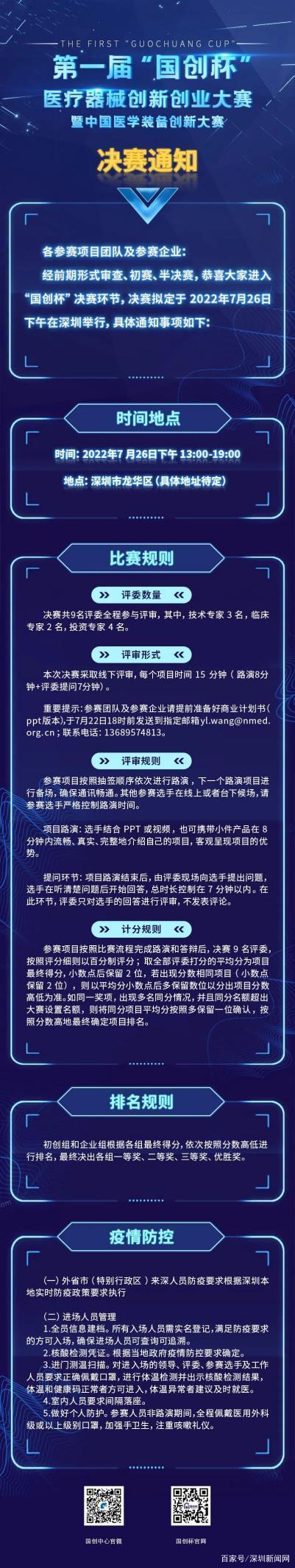 更多大赛决赛详细信息可持续关注国家高性能医疗器械创新中心官方微信公众号和大赛官网发布的相关信息。